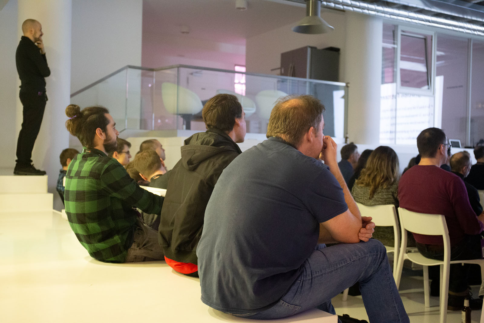 Das inzwischen fünfte TOMORROW_LÄNDLE in den Urban Offices ist vorbei und dieses Mal konnten wir knapp 100 Softwareentwickler, Frontend-Developer und UX-Designer für Themen rund um Frontend-Entwicklung begeistern. Während leckeres Fingerfood aufgetischt wurde, begrüßte Dr. Frank Postel die Anwesenden und stimmte auf den Abend ein.